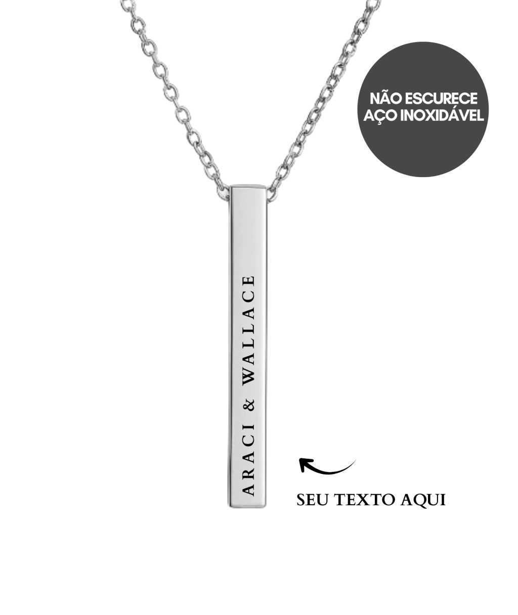 Colar Barra personalizado com escrita (4 lados) com corrente 70cm em aço inoxidável